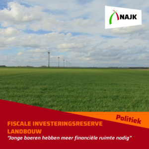 Om investeringen haalbaar te houden, presenteren het landbouwbedrijfsleven en marktpartijen, met steun van de Dierenbescherming, het voorstel voor een Fiscale Investeringsreserve Landbouw (FIL). Met dit instrument kunnen jonge boeren een deel van hun winst fiscaal reserveren voor toekomstige investeringen die bijdragen aan de gestelde doelen omtrent klimaat, stikstof, waterkwaliteit en dierwaardige veehouderij. NAJK roept, samen met alle aangesloten partijen, de formerende Tweede Kamerpartijen dan ook op om dit instrument verder uit te werken en in te voeren.