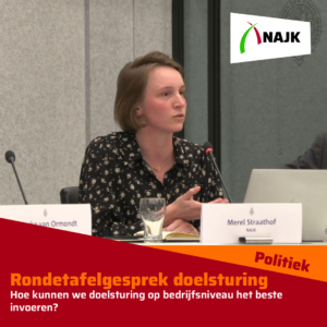 Namens NAJK was portefeuillehouder leefomgeving Merel Straathof aanwezig. Zij bracht het perspectief van jonge boeren en tuinders in en ging in op de praktische uitvoerbaarheid van doelsturing. Tijdens de bijeenkomst stond onder andere de vraag centraal: Hoe kunnen we doelsturing op bedrijfsniveau het beste invoeren?