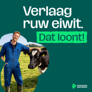 23 april 2026 – Het Convenant Verlagen ruw eiwit rantsoenen melkveebedrijven (Convenant Voerspoor) lanceert op 23 april de landelijke campagne ‘Verlaag ruw eiwit, dat loont’. De campagne laat zien wat melkveehouders en hun adviseurs samen kunnen doen om lagere mestafzetkosten en minder stikstofuitstoot  te bereiken.